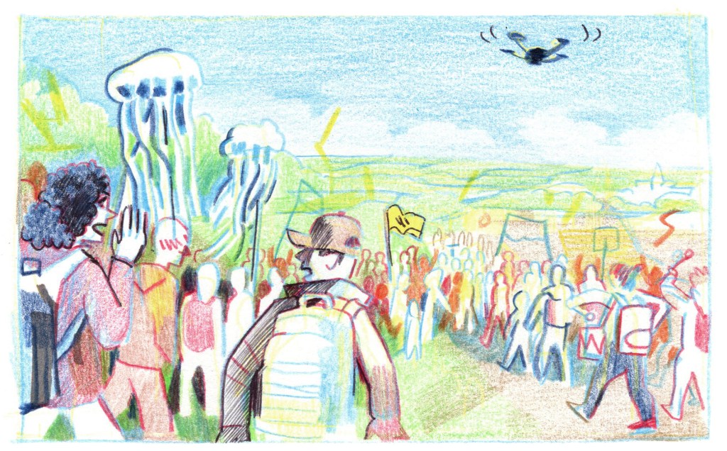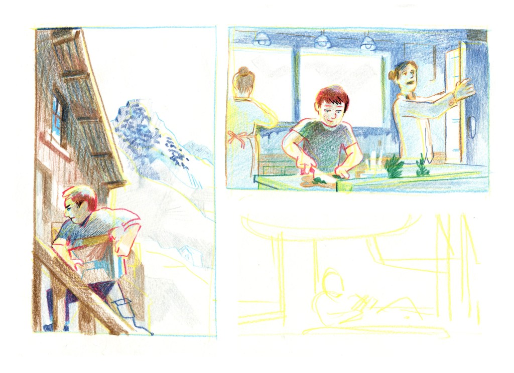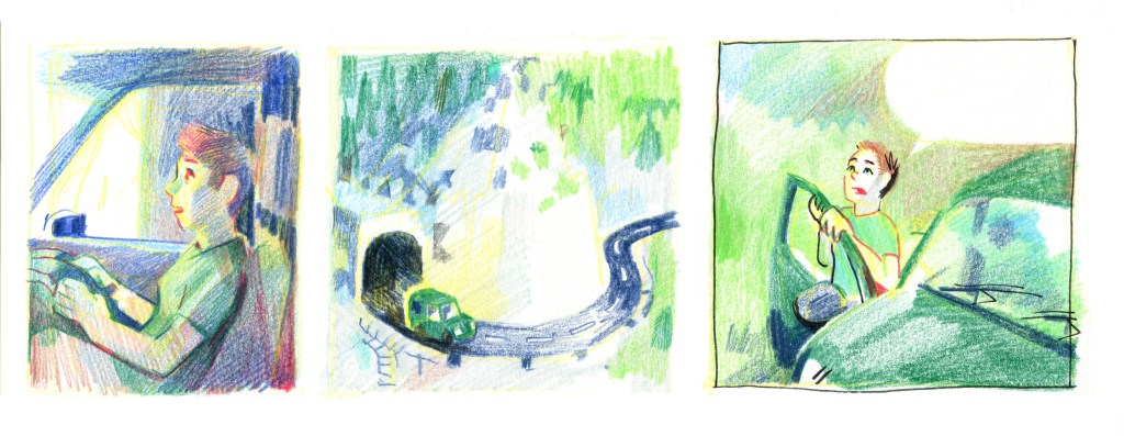 Ci dessous, une poignées d’images sans rapport direct, qui donnent d’autres exemples de la technique de dessin, et du rendu prévu pour ce reportage.